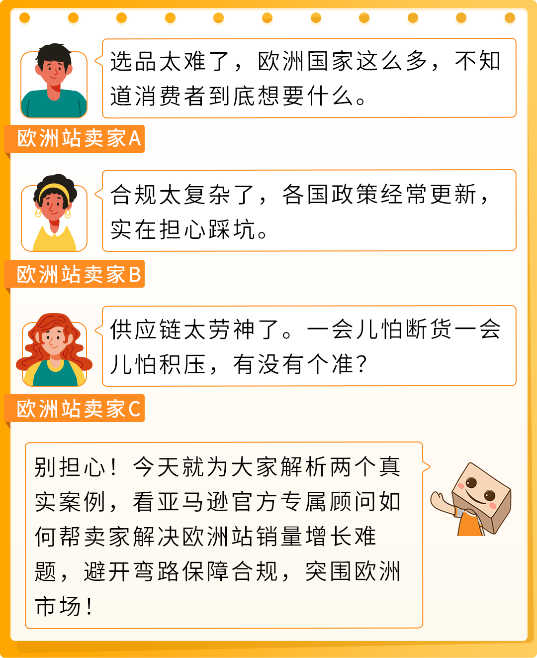 ●对欧洲市场缺乏了解,需要在选品上获得更专业的深度洞察。 ●供应链规划无从下手,导致备货节奏混乱,影响销售。 ●促销手段单一,曝光度和转化率有限,钱花出去了但是销量不理想。 ●精准选品:通过选品指南针锁定高潜类目,降低试错成本。 ●智能供应链:实时监控库存,提前预警断货与积压。 ●组合促销打法:结合欧洲站促销日历,叠加秒杀、Z划算,提升曝光。 下面就具体看看,针对Jason遇到的困难,官方专属顾问结合亚马逊工具与专业经验,如何把难题各个击破: 官方专属顾问首先借助选品指南针的“类目分析”功能,为Jason从站点、品类、关键词等多维度切入,深度洞察欧洲市场的消费需求趋势、转化表现及退货率等关键指标,识别出具有爆发潜力的优势类目,帮助Jason高效选品。 随后,顾问进一步通过“全球商品需求”功能,为Jason分析产品在欧洲其他站点的市场需求量与竞品ASIN数据,提供清晰的跨站点拓展依据,真正实现“以数据驱动选品”,为Jason降低试错成本、更好把握类目商机。 为了避免断货或库存积压,官方专属顾问为Jason提供了进一步的帮助: ●结合市场趋势分析,科学规划商品的备货数量。 ●智能监控库存健康状态,主动预警断货与积压风险。 通过以上方式帮助Jason更智能地管控库存,他的库存周转率得到了明显提升。 促销并不是单纯的“花钱买量”,而是需要结合自身情况,选择适合自己的促销打法。 ●官方专属顾问整理了欧洲站促销日历,根据Jason产品季节性和促销预算,协助规划会员日大促、主题日等不同层次促销活动的参与计划和商品提报方案,实现最佳促销效果。 ●协助卖家提报Z划算、秒杀等活动,快速提升商品曝光度与转化率; ●官方专属顾问还为Jason提供了专属推广支持,包括关键促销的提报协助,以及提示每周最高一次的促销费用减免申请机会,切实帮助Jason提升投入产出比。 入驻欧洲站时因为公司营业地址及股权架构变更,触发了 KYC 审核,结果提交材料反复被驳回,整整 3个月无法销售。 在仔细梳理Lily提交的注册资料后,官方专属顾问发现了Lily触发KYC审核的原因: ●公司重要信息变更:2023年10月将公司营业执照地址更改到香港,同时公司的收益人和法人股权等信息做了变更。 ●授权委托书有误:授权委托书中的收益人写成了股权人并且无手写签名。 ●公司章程文件模糊:公司章程及人员组成结构描述不清晰。 针对这些问题,官方专属顾问给出了系统化的合规优化方案: ●建议Lily补齐授权委托书、完善公司章程,并获取香港公司周年申报表; ●建议Lily提供清晰完整的股东结构图,并收集所有受益人签名。 在官方专属顾问的全程协助下,Lily的KYC审核最终顺利通过。