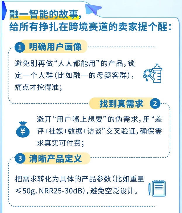 比“找不到需求”更可怕的是,在“伪需求”上浪费时间和金钱 —— 很多卖家栽跟头,正是因为没做需求筛选,把用户“随口一提”当成了“愿意付费”的刚性需求。融一智能的“伪需求三步曲”,能帮助品牌高效过滤无效需求,把资源集中在核心痛点上。